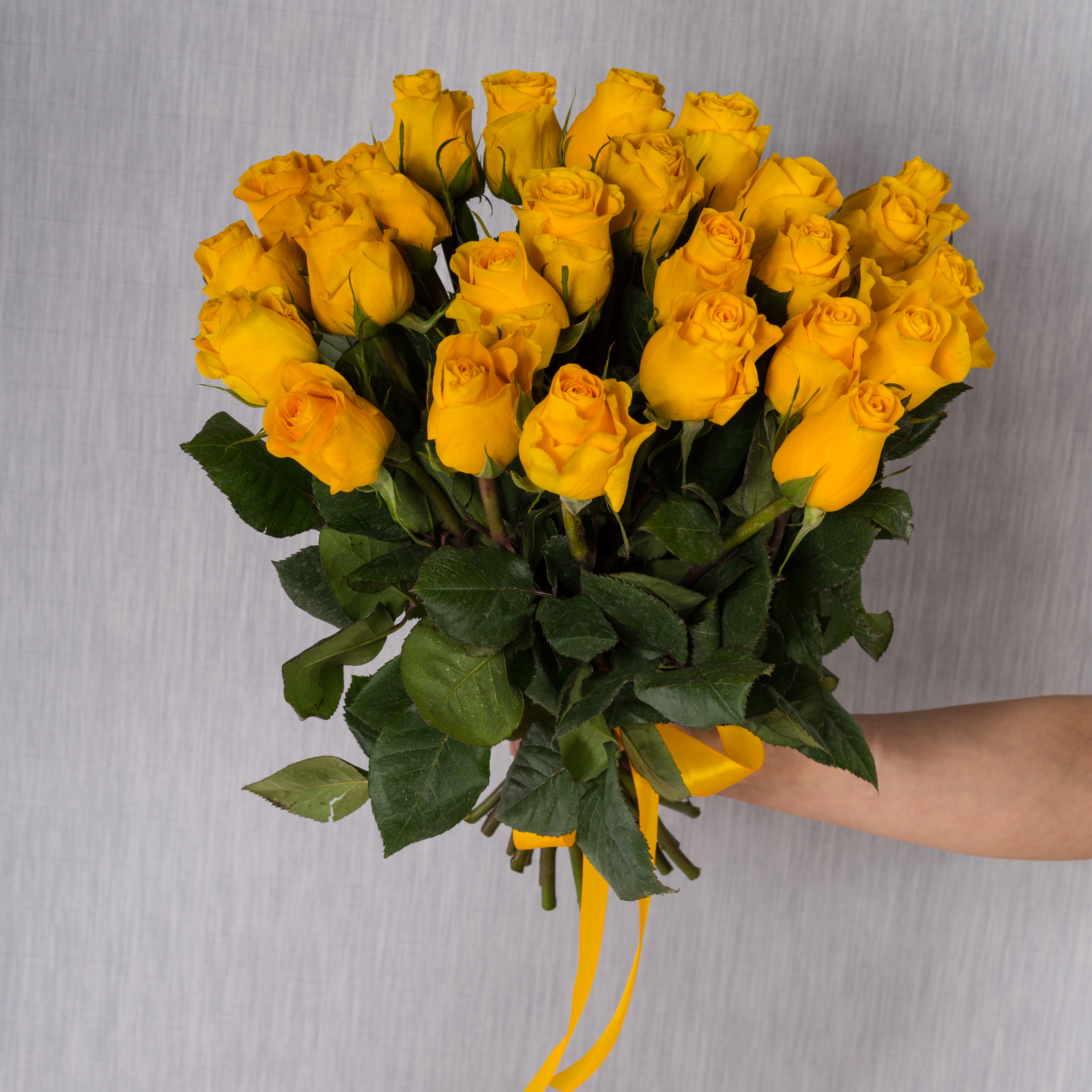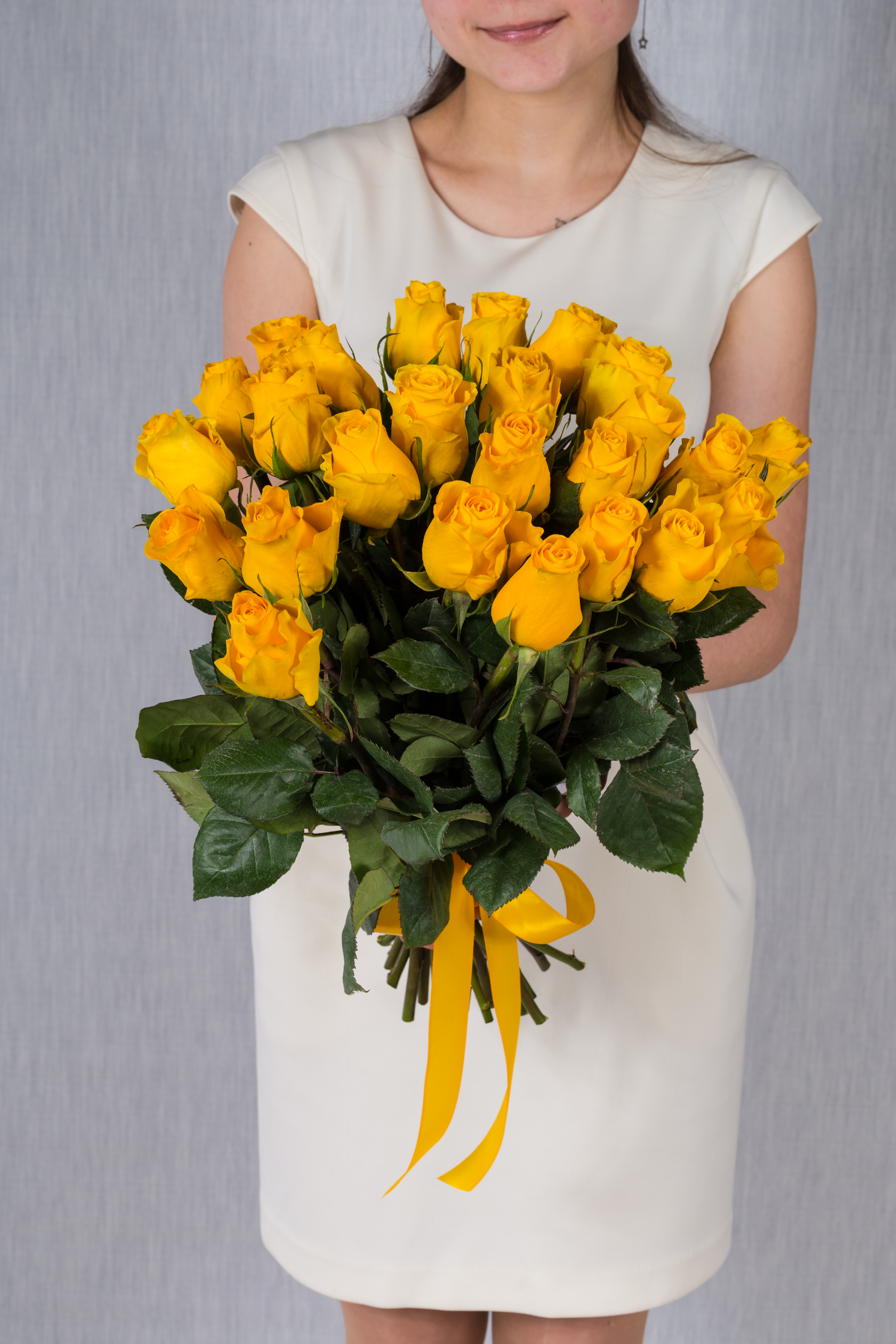 Букет из 25 желтой розы, роза 60 см.Дополнительно