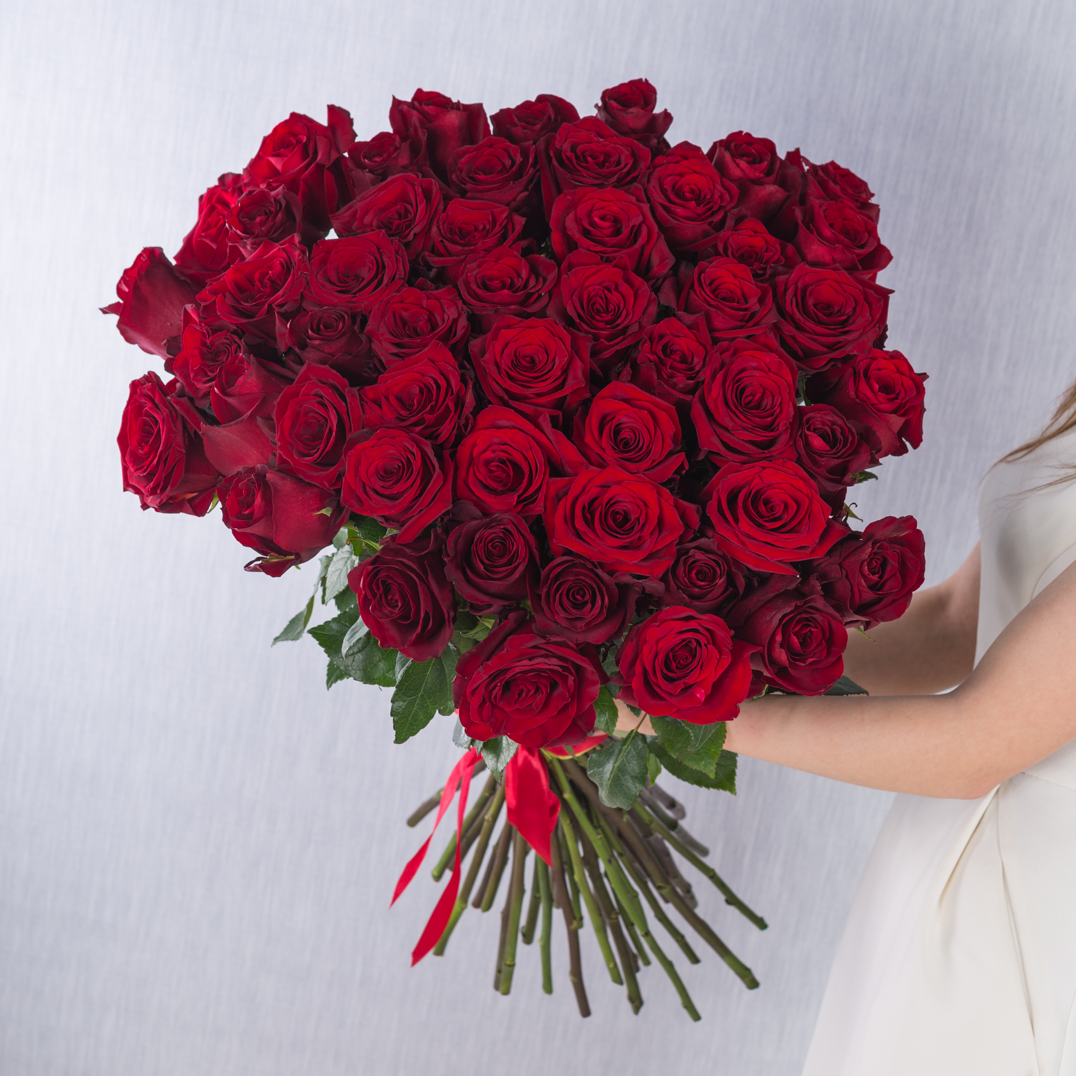 Букет из 51 красной высокой розы Эквадор 80 см.
