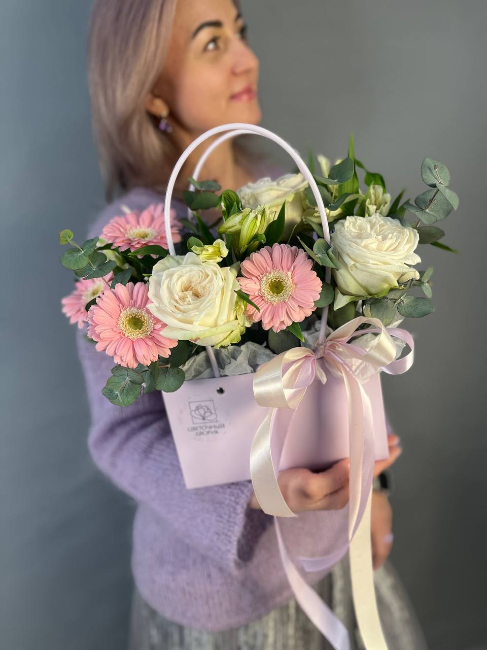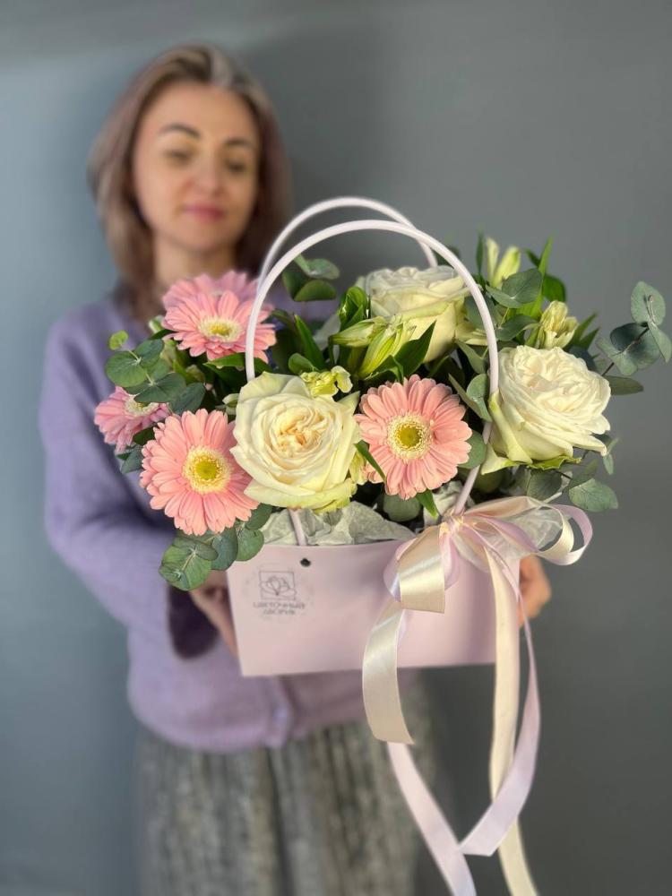 Альстромерия 3шт, гермини 4шт, роза White O’Hara 3штДополнительно