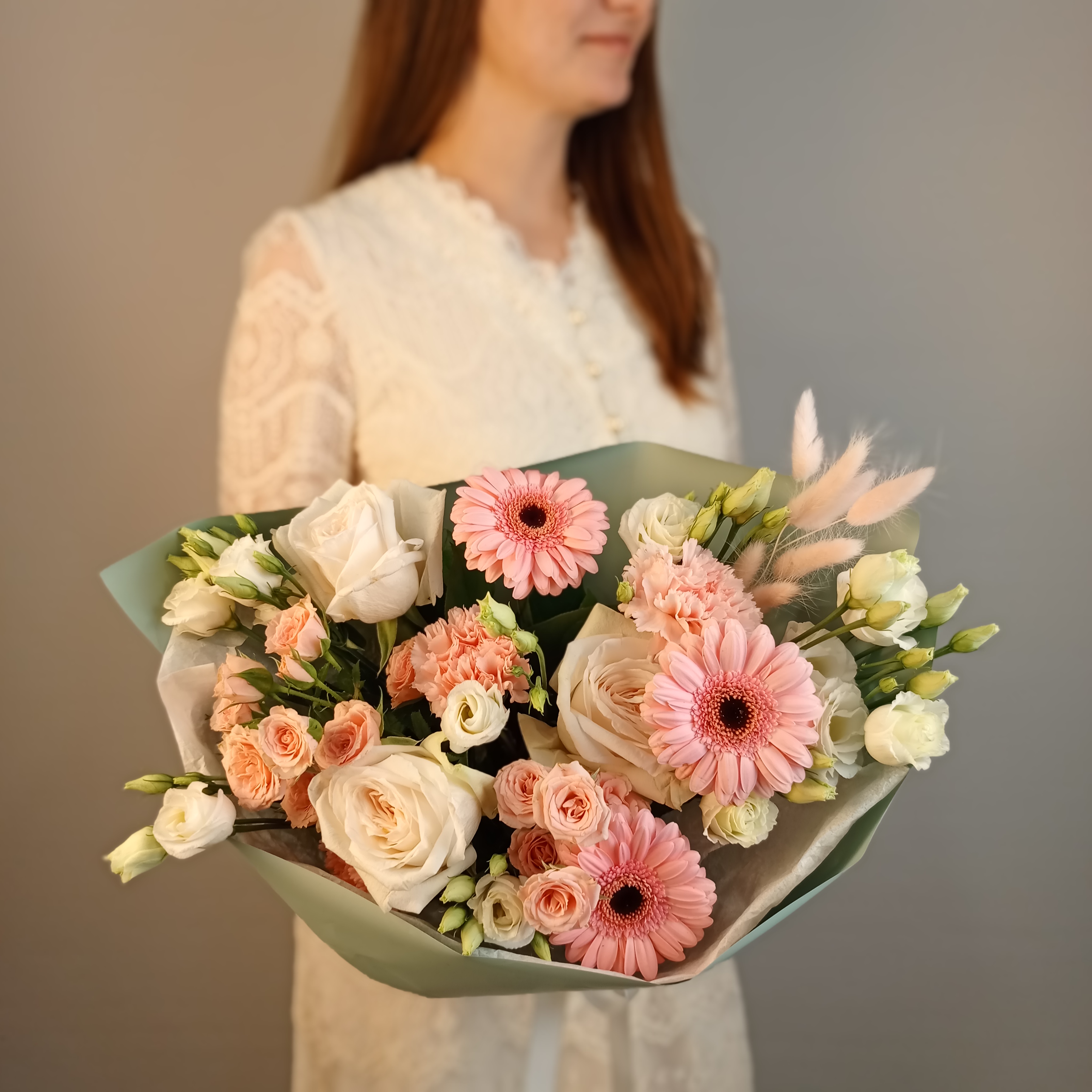 Гермини, Роза кустовая, Сухоцвет Лагурус, Роза Эквадор