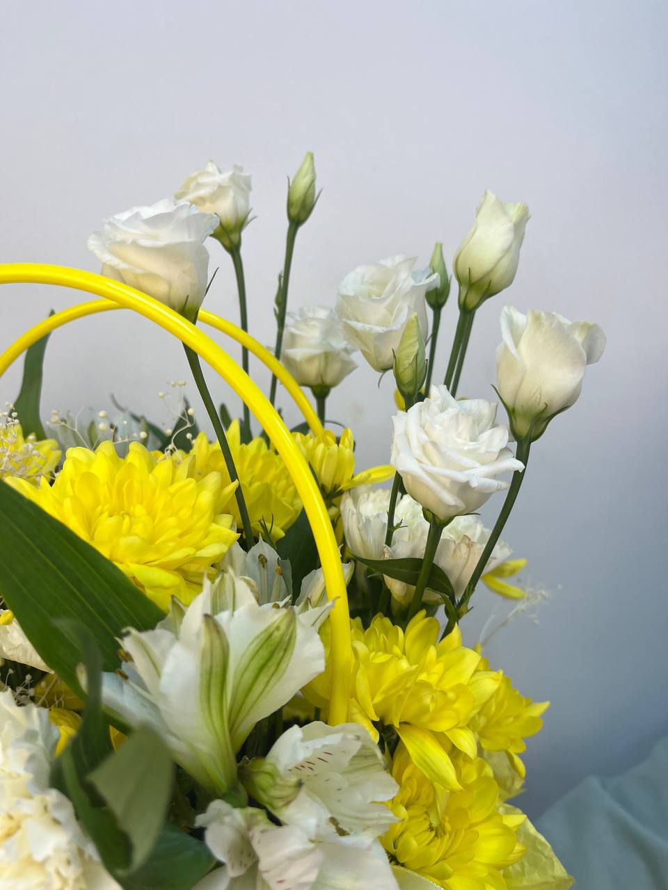 Вероятно, на некоторые цветы из состава сейчас не сезон, но мы с удовольствием соберем похожий, и даже лучше! Согласуем с Вами все замены после оформления заказа и пришлем фото готового букета