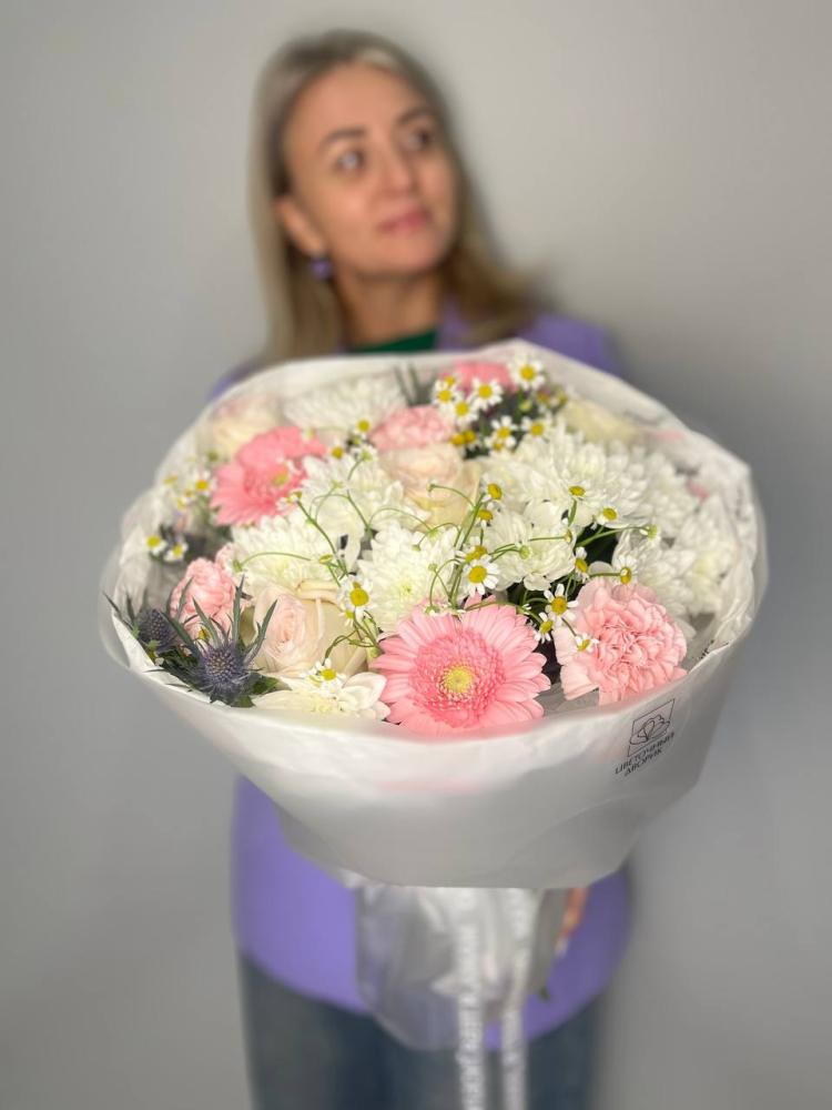 Вероятно, на некоторые цветы из состава сейчас не сезон, но мы с удовольствием соберем похожий, и даже лучше! Согласуем с Вами все замены после оформления заказа и пришлем фото готового букета