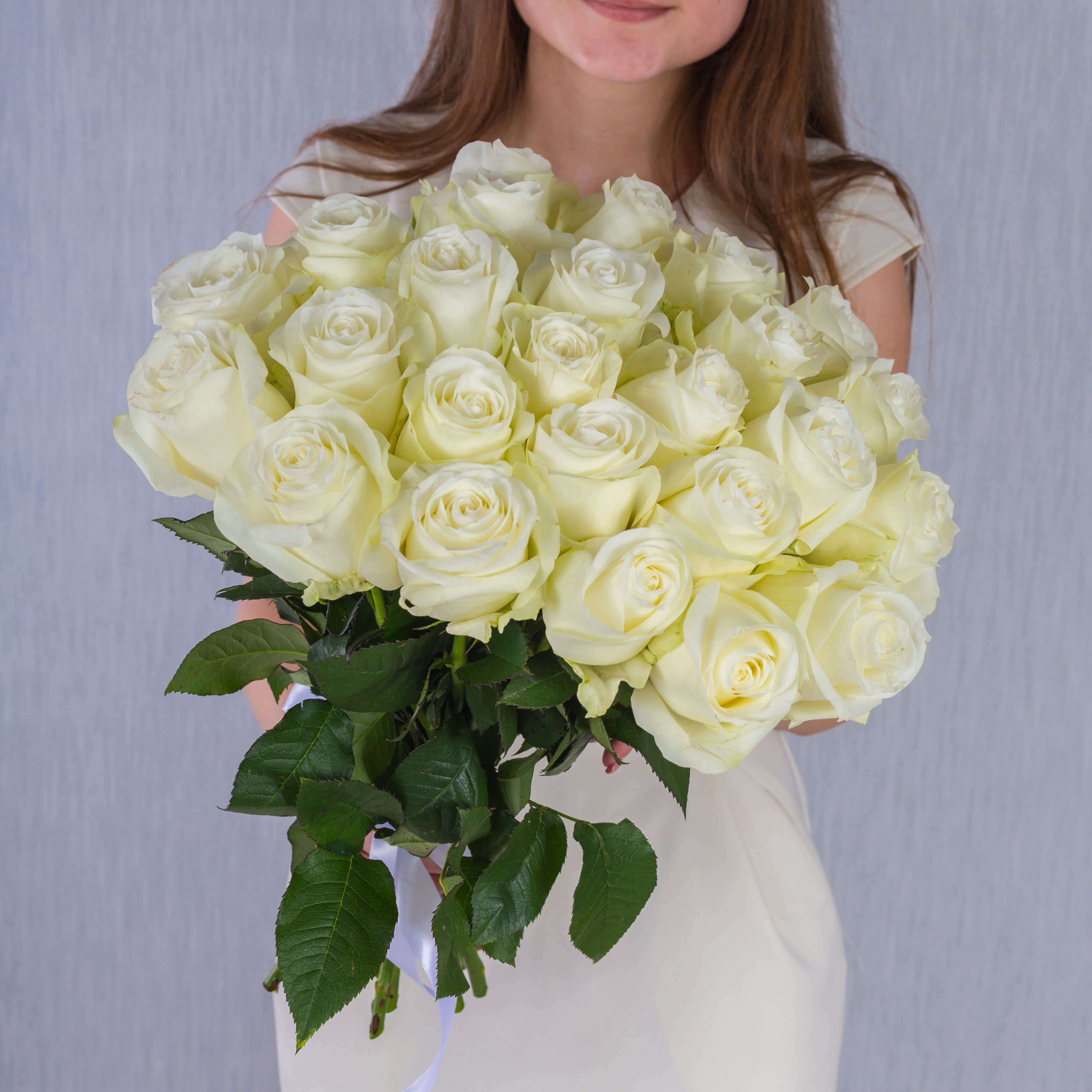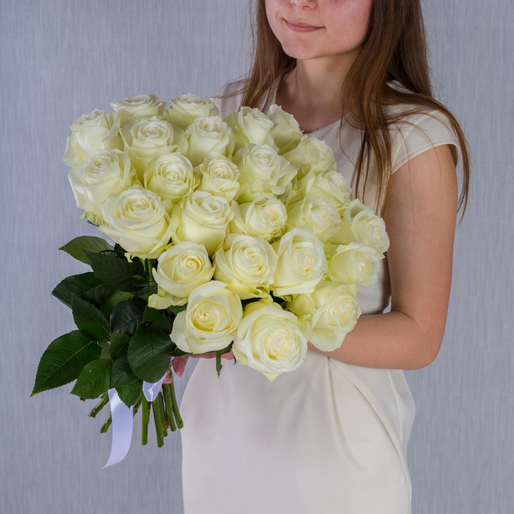 Моно букет 25 белых роз Эквадор 80см