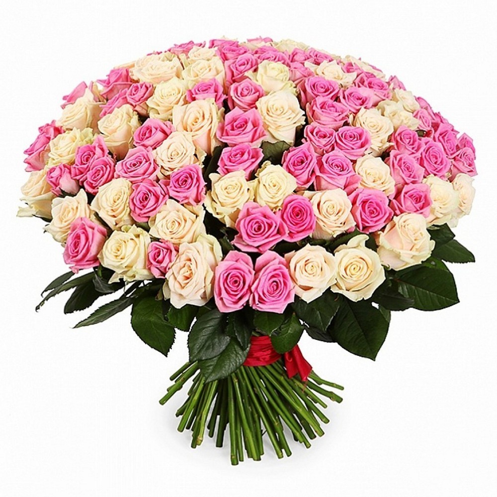 Букет из 101 белой и розовой розы, розы 60см.Дополнительно